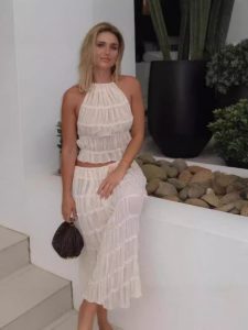 Fashionable and sexy backless halter neck strap pleated chiffon lace vest long skirt suit Fabric name: cotton polyester Pattern: solid […]